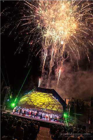 Desde el año 2009 venimos realizando el Concierto de la Banda Sinfónica, sincronizada con Fuegos Artificiales en la Feria de Albacete. Nuestra empresa realiza toda la producción, desde la instalación de la iluminación, sonido y fuegos artificiales, hasta los grupos electrógenos y elevadores necesarios para el espectáculo.